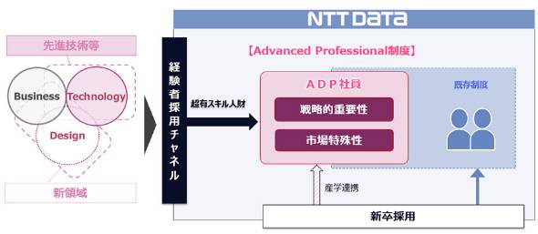 NTTデータは、AIやIoTなど先端技術について、高度な専門知識・技術を習得している人材を、市場価値に応じた報酬で採用する制度「Advanced Professional」(ADP)を新設した。